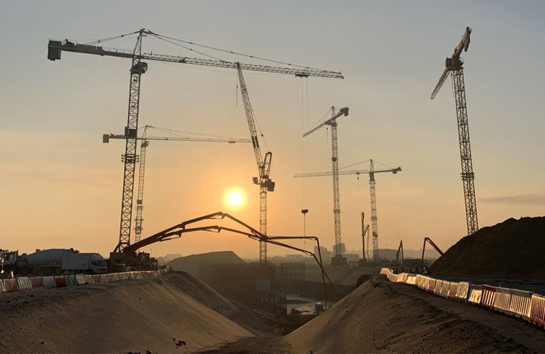 Site preparation works have already come underway. At the peak of the works, 2 500 workers will be deployed and the site will use up to 16 tower cranes, including the world’s largest tower cranes in order to install the equipment inside the plant (photo courtesy BESIX Group).