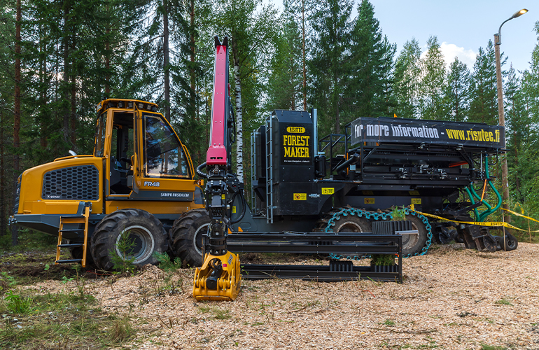 A Risutec Forest Maker planting machine fitted on a Sampo Rosenlew FR48 forwarder.