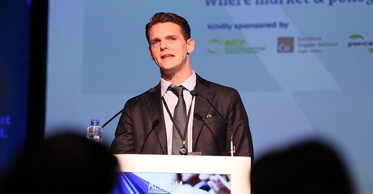 Swedish MEP Christofer Fjellner (EPP) here seen addressing delegates at the recent European Biomass Association (AEBIOM) European Bioenergy Future (EBF) conference in Brussels, Belgium.