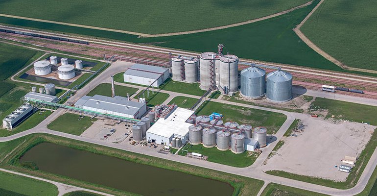 The Flint Hills Resources Fairmont ethanol plant in Nebraska (NE) buys 42 million bushels (≈ 1.06 million tonnes) of corn annually to produce 120 million (US) gallons (≈ 454 million litres) of ethanol, 310 000 tons of distillers grains and nearly 20 million pounds (≈ 44 000 tonnes) of distillers corn oil (photo courtesy Flint Hills Resources).