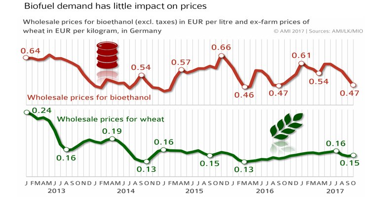 As UFOP points out in the report, this is confirmed by the precarious market situation for common wheat, with prices of ≈EUR 150 per tonne. The energy value of one tonne of wheat corresponds to approximately 400 litres fuel oil or roughly EUR 220 per tonne, depending on the current price for fuel oil.