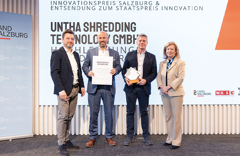 Austria-headed UNTHA shredding technology GmbH (UNTHA) has announced that it has been awarded the inaugural Salzburg Innovation Award 2026 – a prestigious accolade for innovative companies whose market-ready projects demonstrate the quality and diversity of the regional economy. The award is presented by the Provincial Government of Salzburg, the Salzburg Chamber of Commerce and Innovation Salzburg. In addition, the award comes with a nomination for the Austrian State Prize for Innovation.