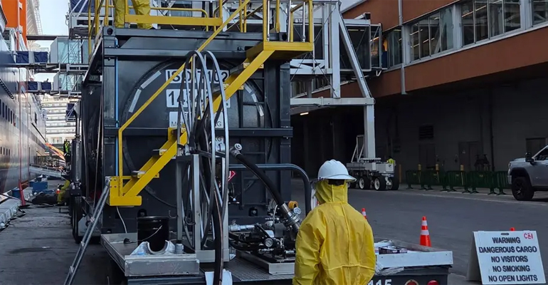 West Coast Clean Fuels is currently the only operator in the United States whose truck-to-ship methanol bunkering procedures are US Coast Guard-approved, and its infrastructure is designed for rapid deployment to additional ports on demand (photo courtesy World Fuel Services).