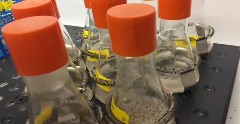 A team of Washington University (WUSTL) researchers is engineering bacteria to manufacture biofuel. Pictured are cultures of bacterial strains that can turn toxic compounds into the precursors of biofuels (photo courtesy William R. Henson).